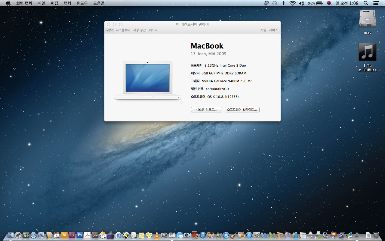맥북 2009mid 흰둥이입니다.