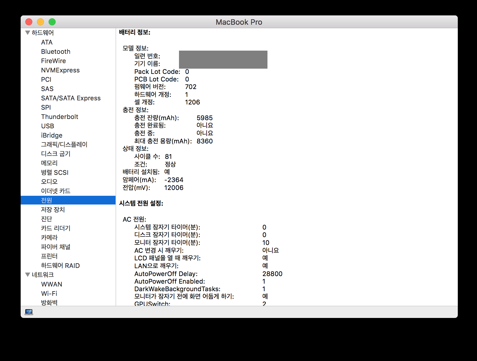 배터리 사이클 : 81회 (최대 1,000회)