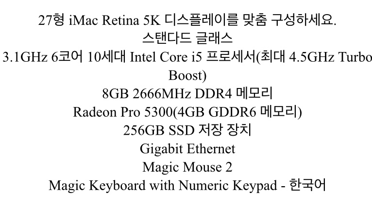 구성 : 아이맥 + 매직마우스 2 + 매직키보드 (with Numeric Keypad-한국어)