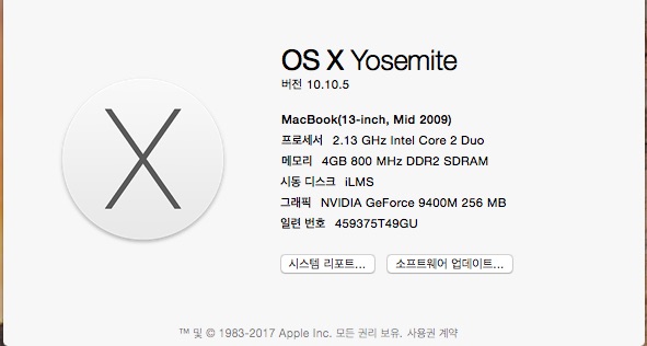 프로세서 2.13 GHz intel Core 2 Duo