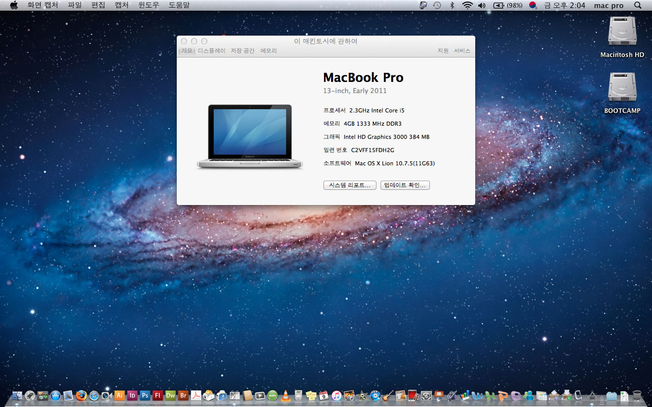 맥os는 10.7.5 프로그램들도 잘 설치되어 있습니다