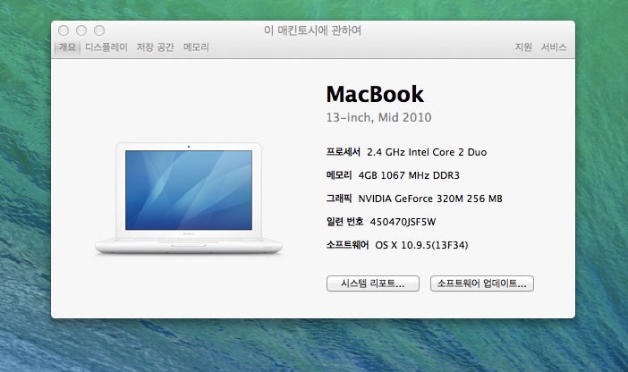 2010년 유니바디 화이트맥북 마지막모델이라 인터넷도 빠릅니다