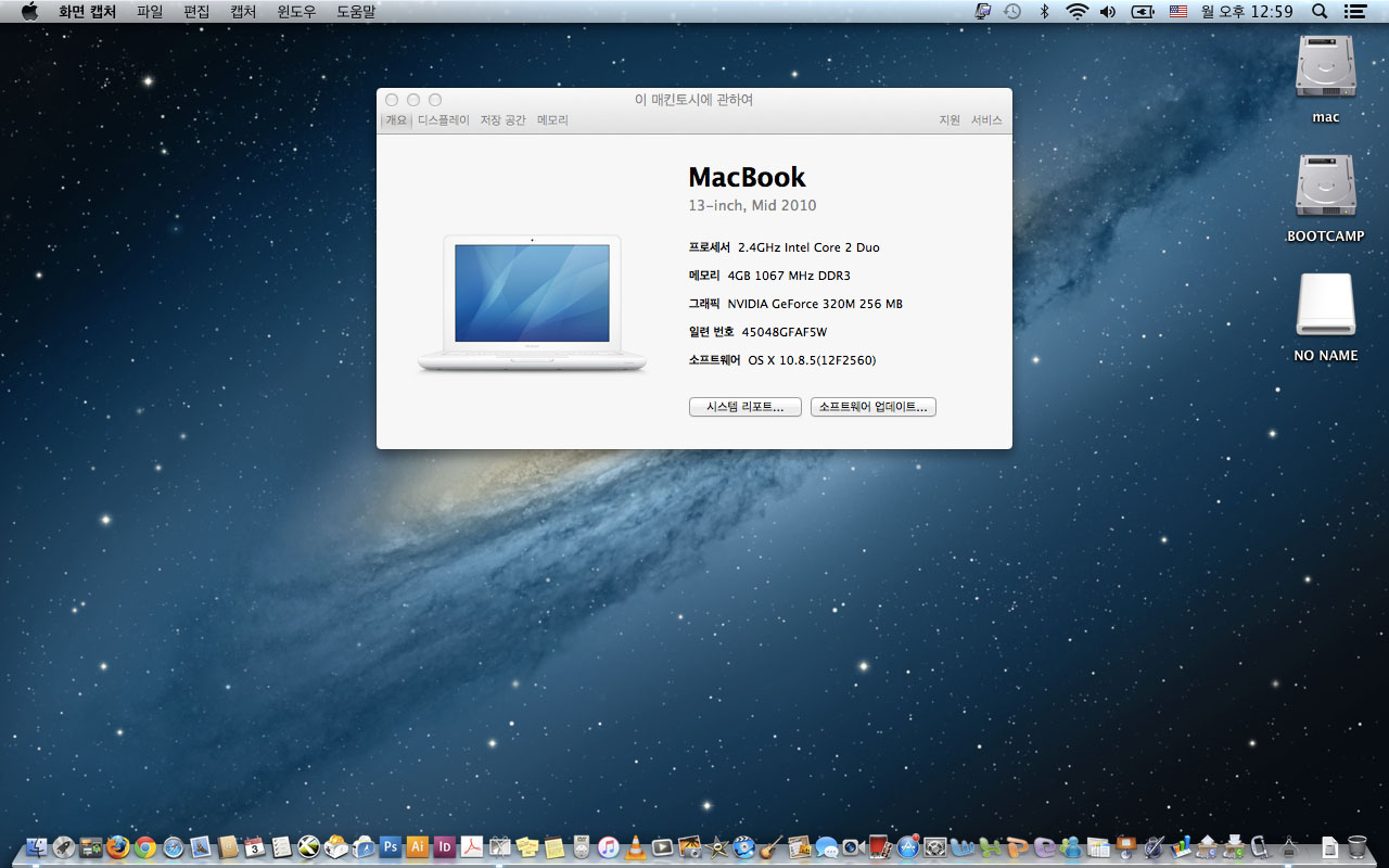 2010년 화이트 맥북 13인치- 맥 디자인프로그램들이 사진처럼