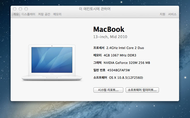 2010년 유니바디 화이트맥북 마지막모델이라 인터넷도 빠릅니다