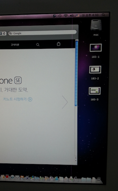 사진처럼 우측화면에 수직으로 가는 선이 하나 생긴 아이맥입니다