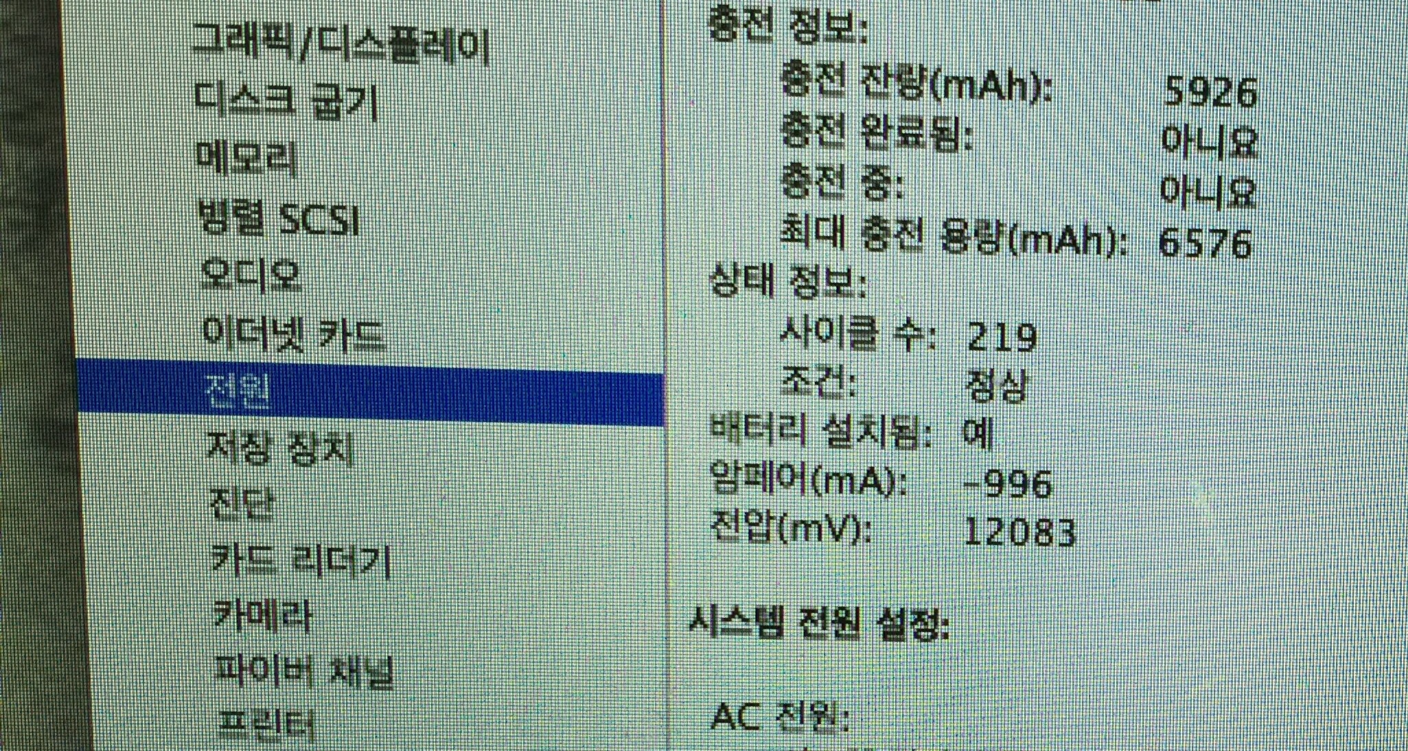 배터리 사이클 정상입니다