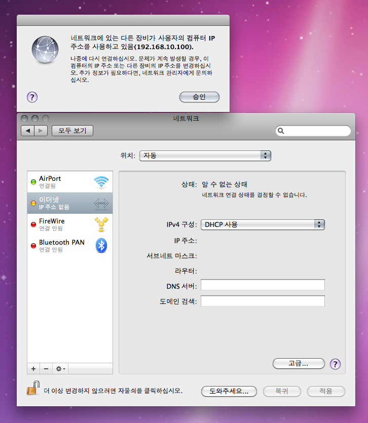 이더넷 ip주소없음으로 나오면서 네트워크 연결이 안되요..ㅠㅠ