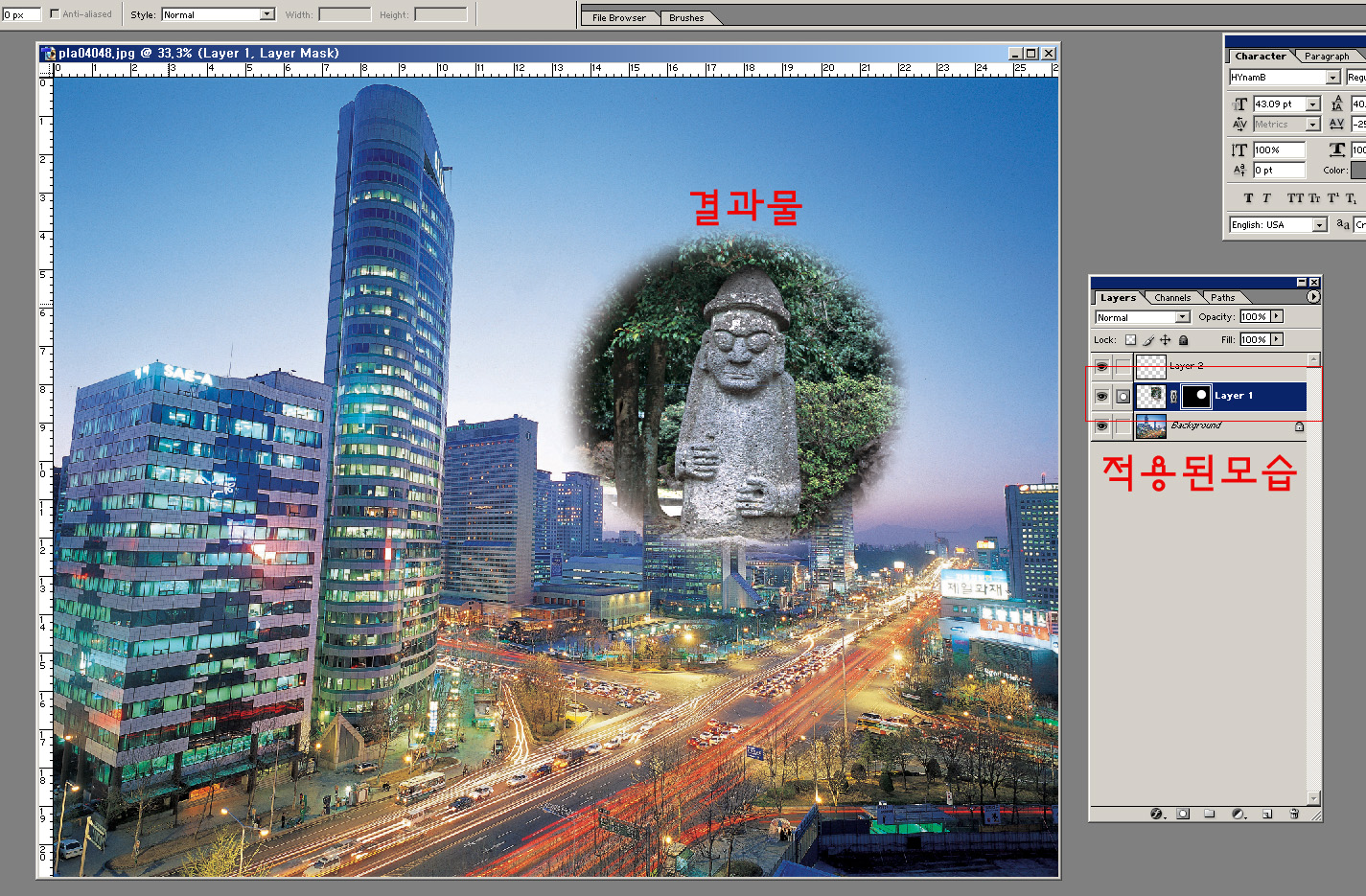 4. 단추를 누르시면 적용될 레이어에 마스킹레이어가 추가되면서 효과가 적용되요.